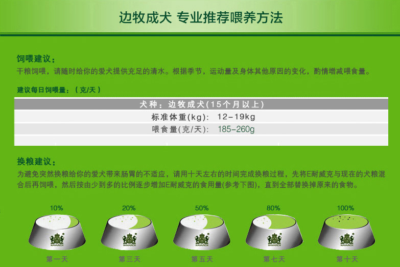 干糧飼喂,請(qǐng)隨時(shí)給您的愛(ài)犬提供充足的清水。根據(jù)季節(jié)、運(yùn)動(dòng)量及身體其他原因的變化,酌情增減喂食量。