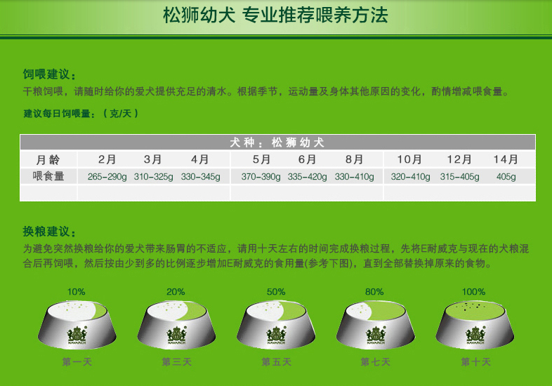干糧飼喂,請隨時給您的愛犬提供充足的清水。根據季節(jié)、運動量及身體其他原因的變化,酌情增減喂食量。