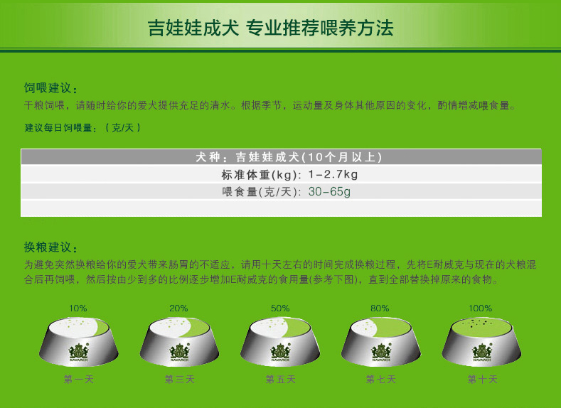干糧飼喂,請(qǐng)隨時(shí)給您的愛犬提供充足的清水。根據(jù)季節(jié)、運(yùn)動(dòng)量及身體其他原因的變化,酌情增減喂食量。